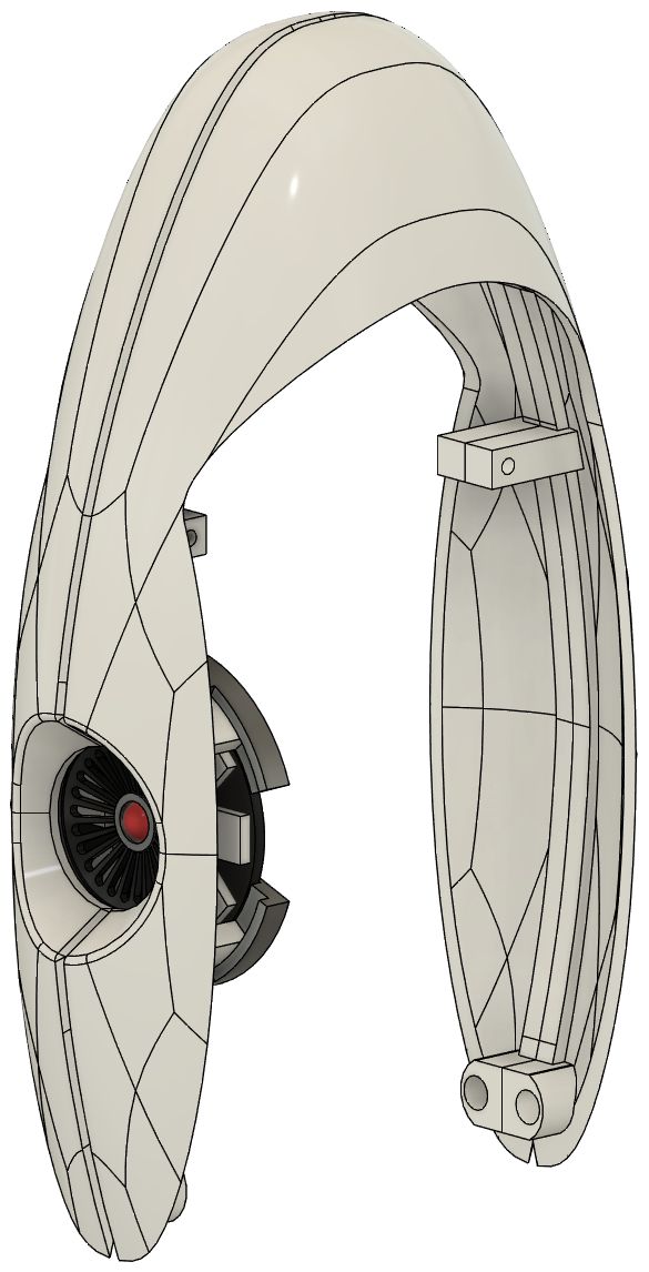 The center piece is printed flat to make sure it's easy to print and doesn't show any layer lines. However, the shape should be slightly indented. A tiny "mold" is added to the models to help with this. After printing, place the eye in some hot water. PLA gets soft at these temperatures, so you can push it on the mold to get the desired shape.