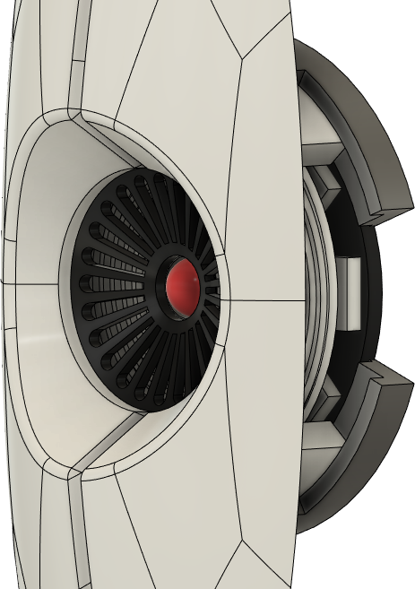 The center piece is printed flat to make sure it's easy to print and doesn't show any layer lines. However, the shape should be slightly indented. A tiny "mold" is added to the models to help with this. After printing, place the eye in some hot water. PLA gets soft at these temperatures, so you can push it on the mold to get the desired shape.
