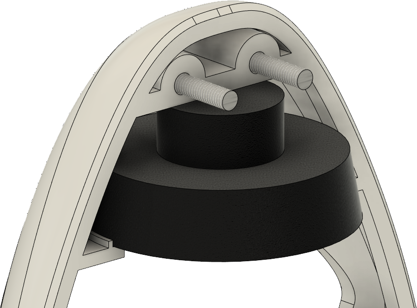 Cut two pieces of M3 threaded rod to length and glue them in one side of the main body. Make sure the wires on your speaker are long enough, because it won't be easy to access it after this step.