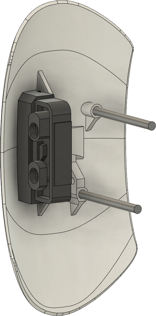Cut 2 4mm rods to length and run them through the bottom plate. They should stick out a few milimeters on each side.