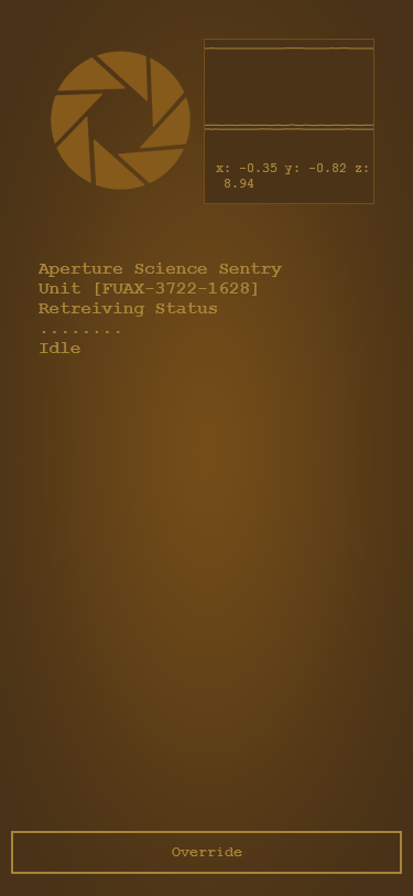 The homepage is the page you'll use the most. You can see a log of what the turret is doing, a graph of the accelerometer and a button to start controlling your turret manually.